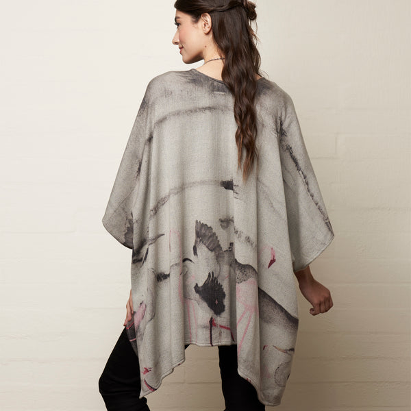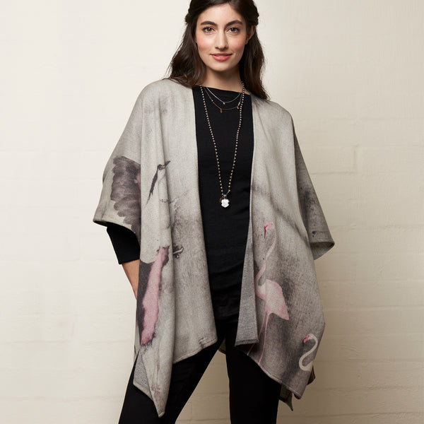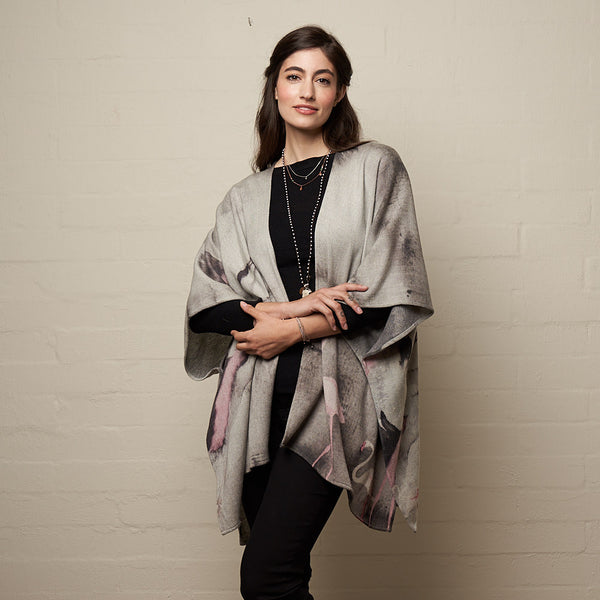 Our easy wear Cape designs are made from 100% woven Wool + are loved for their easy wearability - perfect over jeans and a T shirt   Unique digital printed designs Made from luxe soft 100% Wool  One Size  80 x 110cm wide
