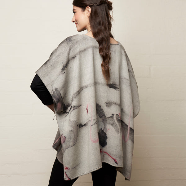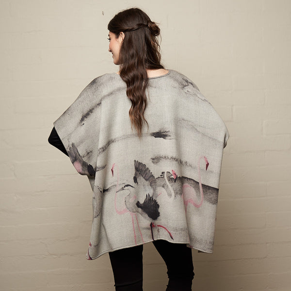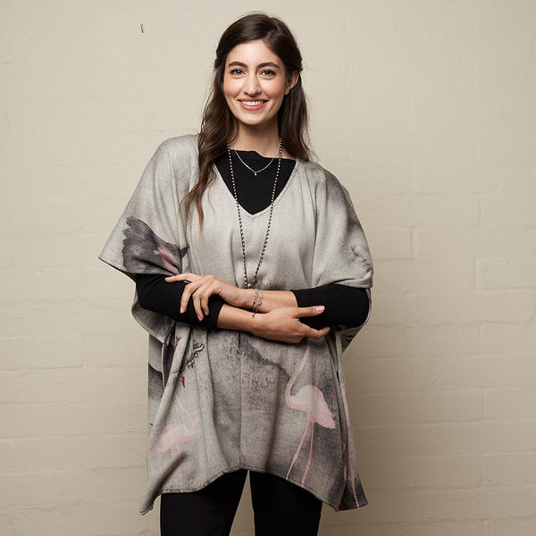 Our easy wear Poncho designs are made from 100% woven Wool + are loved for their easy wearability - perfect over jeans and a T shirt    Unique digital printed designs Made from luxe soft 100% Wool   One Size   80 x 90cm wide